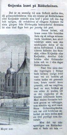 Geijerska huset på Riddarholmen 1865, aftecknadt af J. F. Meyer s:or. Litografi i Illustrerad Tidning, nr 45 den 11 november 1865.