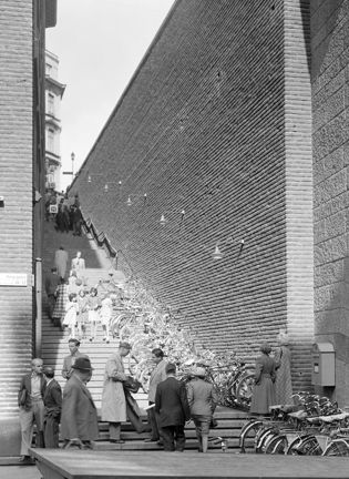 Trappan till Malmskillnadsgatan från Kungsgatan 32. Folkliv och parkerade cyklar