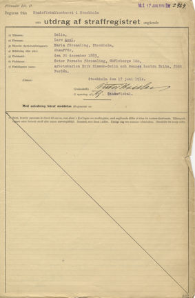 SE/SSA/0140/Stockholms rådhusrätt/08/avd 7/Brottmål 1914/Nummer 118, inneliggande handlingar, Utdrag ur Straffregistret