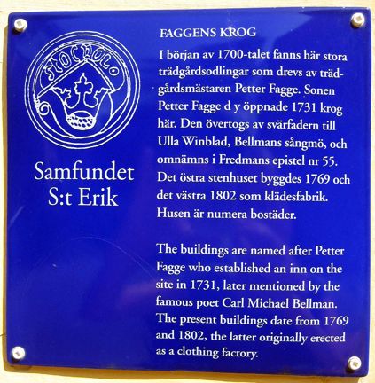 I början av 1700-talet fanns här stora trädgårdsodlingar som drevs av trädgårdsmästaren Petter Fagge. Sonen Petter Fagge d y öppnade 1731 krog här. Den övertogs av svärfadern till Ulla Winblad, Bellmans sångmö, omnämns i Fredmans epistel nr 55. Det östra stenhuset byggdes 1769 och det västra 1802 som klädesfabrik. Huset är numera bostäder.