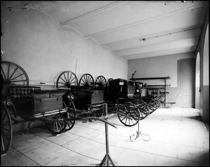 Interiör från Clarence von Rosens vagnbod vid Strandvägen 55