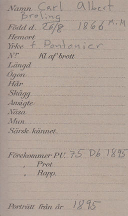 Broling greps 1895 för tredje resan stöld. På baksidan av fotot hittar du mer information om bilden och Broling.
