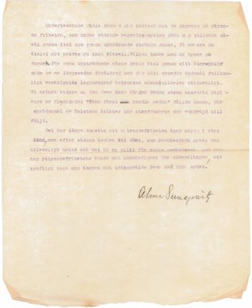 Detta upprop är en protest mot åtalen arrangerad av Radikala klubben, som ser åtalen som angrepp på yttrandefriheten. Uppropet är redan påskrivet av en rad vid den här tiden kända personer som Gulli Petrini, Anton Nyström, Henning von Melsted, Frida Stéenhoff och Julia Kinberg.