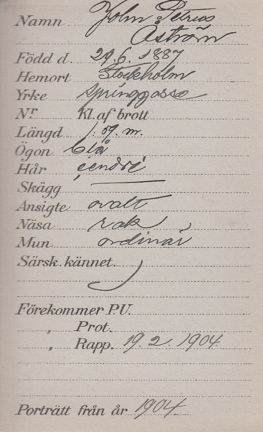 I december 1903 hade Åström tillsammans med en kompis förfalskat en check. Läs mer om det i en polisrapport!