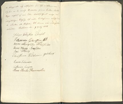 Och som nu En mengd Kullbåtar finnes, hvilka Borttager mycket af wår lilla Arbetsförtjenst wåga wi ödmjukeligen tillförse Oss ädle Collegiums wälgörande åtanka, att Bifalla till denna wår ödmjuka anhållan. Stockholm den 9 julij 1838