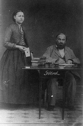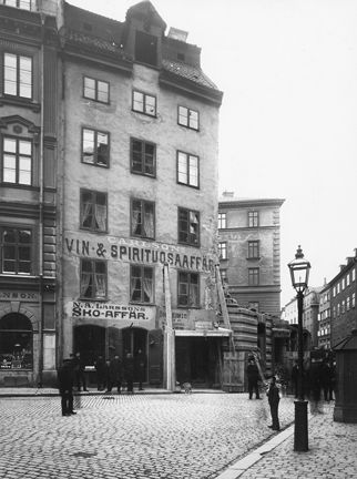 BILD 1: Per Götrek (1798-1876). BILD 2: Per Götrek och hans fosterdotter. BILD 3: Per Götrek cirka 1870. Efter teckning av G H Melin. BILD 4: Huset på Järntorget 85 i Gamla stan där polisen gjorde razzia 1848. Ref kod bilder: 3039/07088b, 07089, 07090 samt 3031/0957.
