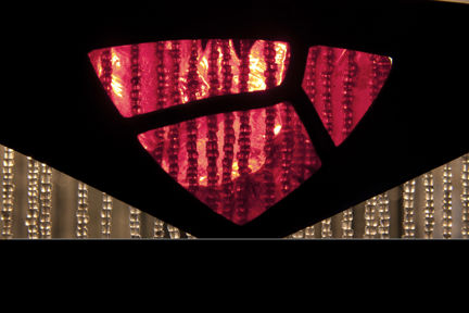 Den här elektriska bordslampan i kontinental jugendstil hade August Strindberg i sovrummet i sin lägenhet i Blå tornet, Drottninggatan 85. Strindberg själv kallade den "lampan med det röda ögat".