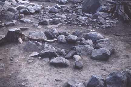 Stensättning, rund, 2,5 meter i diameter och 0,5 meter hög, med klar begränsning. Anläggningen var uppbyggd av 0,1-0,5 meter stora stenar lagda i 1-2 skikt med mylla mellan stenarna. I centrum fanns ett ca 0,5 meter stort område som endast utgjordes av mylla. Anläggningen vilade på berg samt pinnmo i den nordligaste delen. I näst intill hela anläggningen påträffades ett ca 1,5 x 1,75 meter stort och 0,3 meter tjockt mörkfärgat lager mylla som innehöll keramik, bränd lera, brända ben och kol.