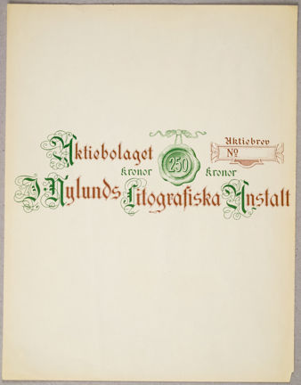 Aktiebrev. J. Nylunds Litografiska Anstalt