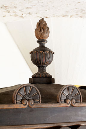 På bild 5 ser man en flamma på taket av likvagnen. Vad flamman symboliserar är inte helt klart men det är förmodligen en koppling till den eviga elden (ner hatamid på hebreiska), en eld som alltid lyste i templet på Tempelberget i Jerusalem. Det ursprungliga templet som byggdes av Salomo finns inte kvar. Den västra muren, idag kallad Klagomuren, är en rest av det andra templet som byggdes på platsen. Arkeologiska utgrävningar har gjorts på platsen och då har man under jord funnit rester av det första templet.