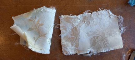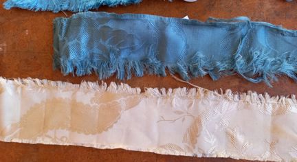 o Gräddvitt tyg, samma mönster som det blå (vävt för drottning Victoria år 1921)