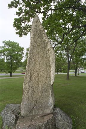 Bilderna visar en runsten som idag står vid Hässelby slott. Det finns runor inristade på två sidor av stenen. På nutida svenska betyder inskriften på stenen: