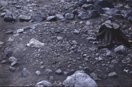 I större delen av anläggningen påträffades ett 4 meter stort och 0,4 meter tjockt brandlager som innehöll en järnkniv, keramik, brända ben och kol.