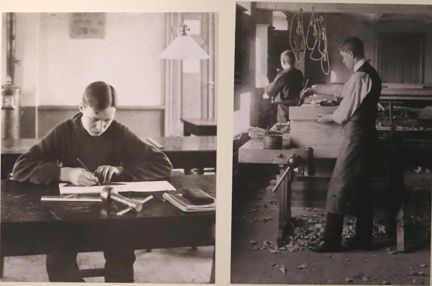 Pojkar under utbildning till möbelsnickare på Repslagargatan 24 på Södermalm. På skolan fanns också utbildning till bland annat smeder, verkstadsmekaniker, urmakare, rörläggare och klädsömmerskor.