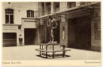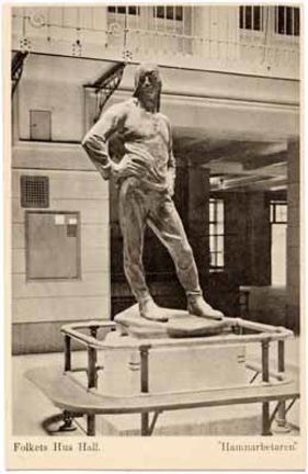 Statyn Hamnarbetaren köptes och avtäcktes ursprungligen i ljushallen i Stockholms stads gamla Folket Hus år 1907. Den är en symbol för arbetarna, specifikt hamnarbetarna. Arbetaren är iklädd en huva som nackskydd som var till för att skydda halsen från koldamm och skav från säckar av jutetyg.