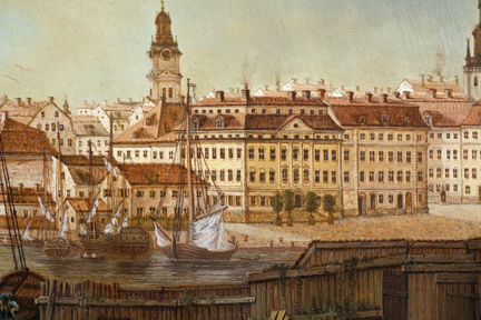 I de följande detaljbilderna ser vi en utsikt mot Gamla stan med Storkyrkans och Tyska kyrkans torn som sticker upp ovanför hustaken. Det går att klicka på bilderna och zooma in detaljer.
